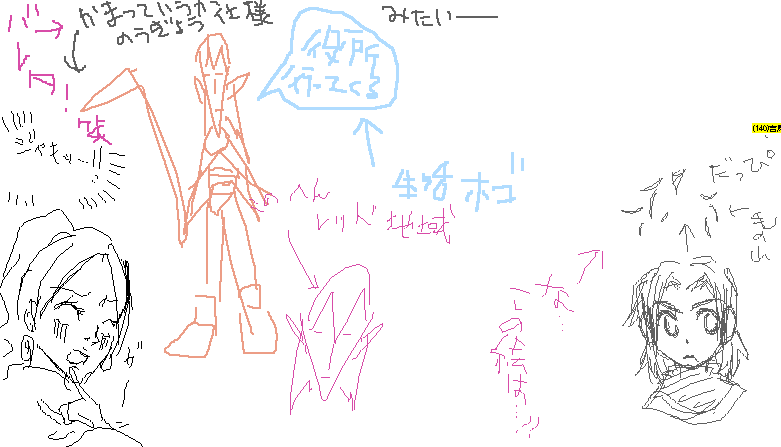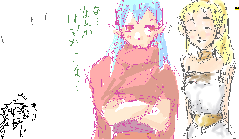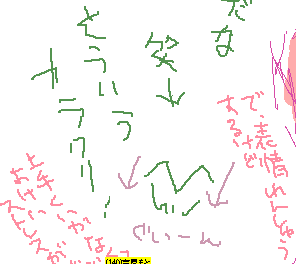 いきなりで何なんですけど、打ち上げ絵茶会、22時から結局朝の8時位まで やってましたから、10時間分もあるんですよ、ログも50枚超えたりしたんですよ、 一体それどうまとめりゃいいんだ?と素朴な疑問が浮上したりするんですけど、 マジでどうしたらいいですか、もうよく判んないですけど、いいや、打ち上げ絵茶会でしたから 主催もかなりルーズにやってたからきっとこのログもルーズに… いや、許されませんね、ごめんなさいすみません何でもないですでも多いです…笑